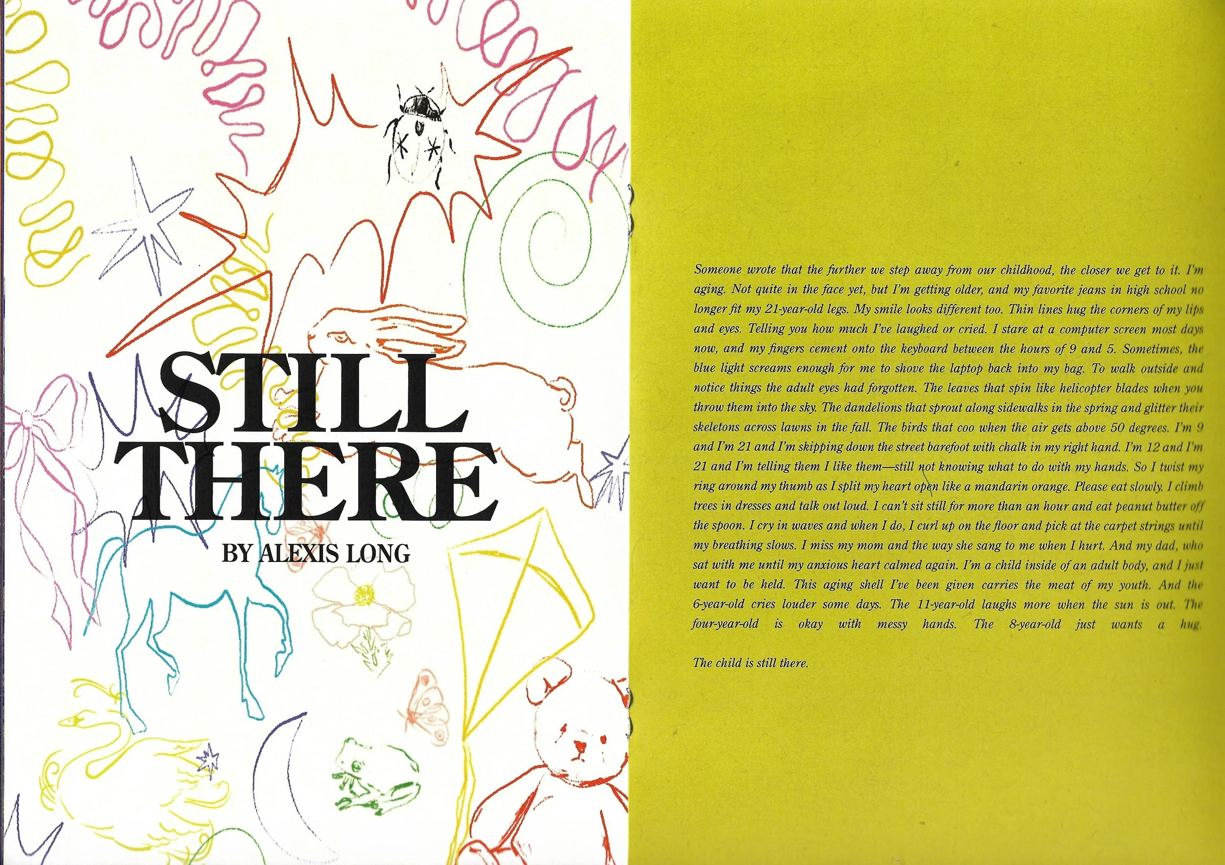 A compilation of photos, graphics & stories written by me featuring some written submissions of friends. It feels like a look into my brain & the beauty I have found in embracing the levity of life. A reminder to all who read it that childlike wonder is a gift. It's meant to be felt, cut up, cried on, read sitting on your couch with your feet propped up but most of all enjoyed.